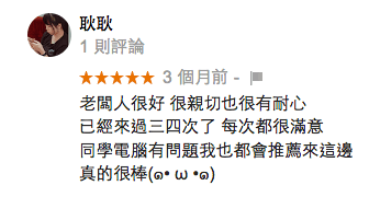 Amy Huang ★★★★★ :在這裡修過螢幕後迅速又有效率後就一試成主顧 之後救摔到地上的手機 請他們代買新手機 跟各種配件 服務都非常好 大推誠實店家